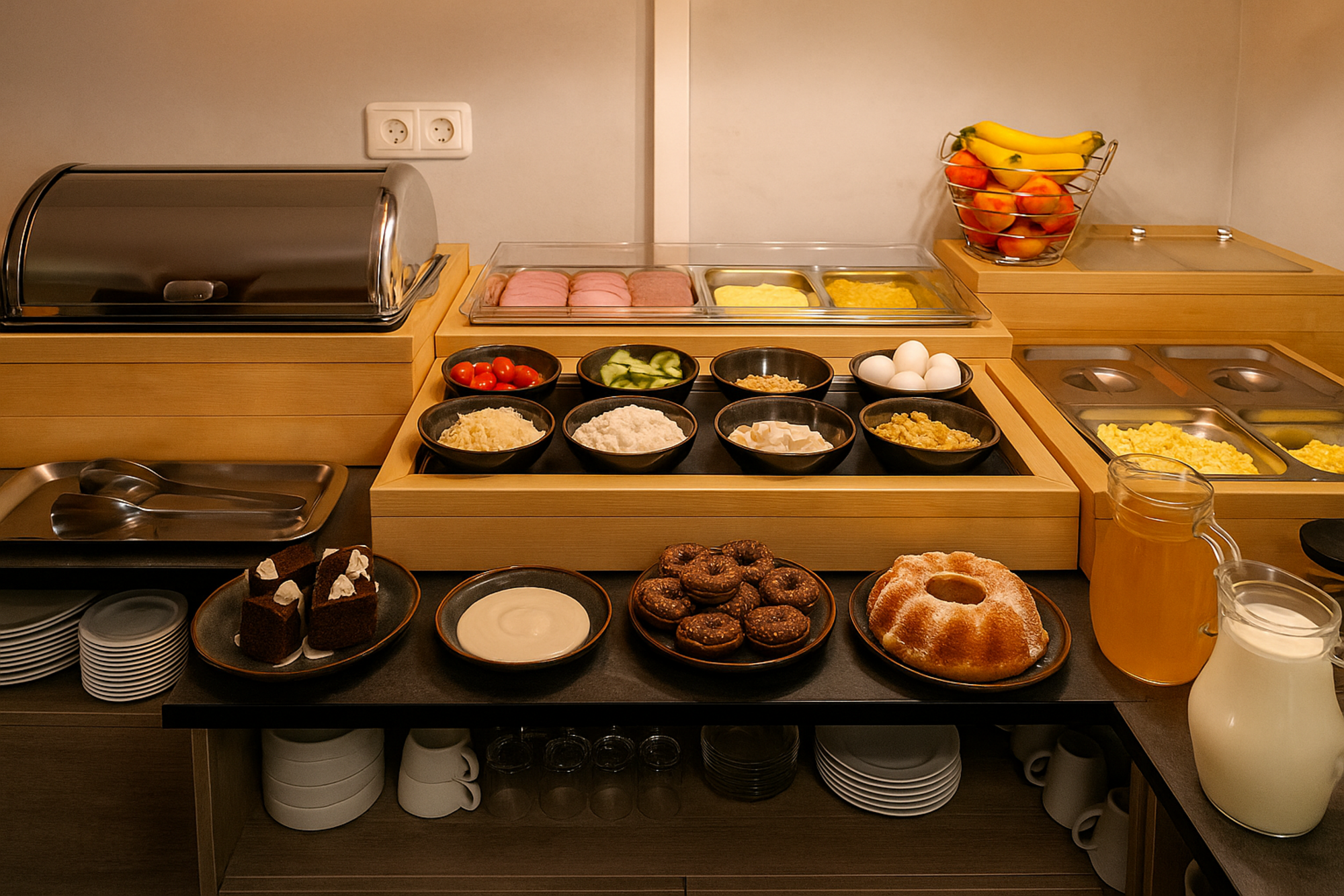 Je všeobecně známo, že snídaně je základ dobrého dne. V našem pensionu nabízíme snídaně formou švédského stolu. A výběr je vskutku bohatý! Nabízíme slané i sladké pečivo, džem, mléčné výrobky a pro příznivce zdravého stravování také cornflakes, ovoce a zeleninu. K pití si můžete vybrat mezi kávou, čajem a džusem. Pro rodiny s dětmi je k dispozici dětská židlička.
